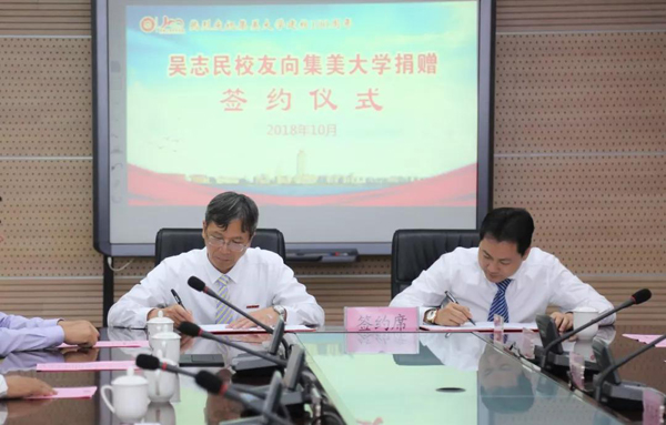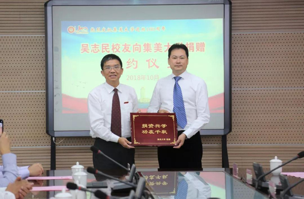 10月16日,我校中文89级校友吴志民回到母校,并以个人名义向母校捐赠1000万元,献礼百年集大。