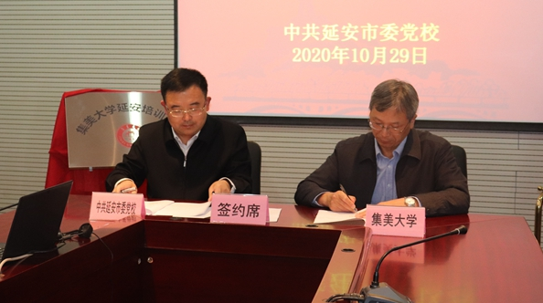 10月29日,在中共延安市委党校培训大楼举行了“集美大学与中共延安市委党校合作共建签约仪式”。我校副校长曹敏杰、中共延安市委党校常务副校长王军、副校长刘宁以及我校规划处、继续教育学院相关人员出席了仪式和座谈会,会议由刘宁主持。
