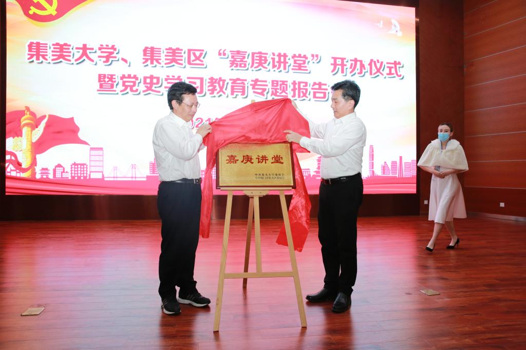 集美是嘉庚精神的发源地,包含嘉庚精神特质在内的厦门精神是中国共产党人精神谱系的组成部分。从集美学校走出的革命家为闽西南革命斗争作出了重要贡献。近两年,我校开设嘉庚精神讲坛和“新思想”讲坛,深入二级学院宣讲220余场,弘扬嘉庚精神,深入学习新思想,在师生中反响强烈。此次,由集美大学和集美区校地共建的“嘉庚讲堂”,将依托马克思主义学院、陈嘉庚研究院等关于嘉庚精神的研究资源和高校理论宣讲优势,把党史学习教育和嘉庚精神教育相融合,深入贯彻落实习近平总书记“要把红色资源利用好、把红色传统发扬好、把红色基因传承好”的重要指示精神,坚持理论与实践相结合,打造本土宣传教育、文化建设的新窗口。