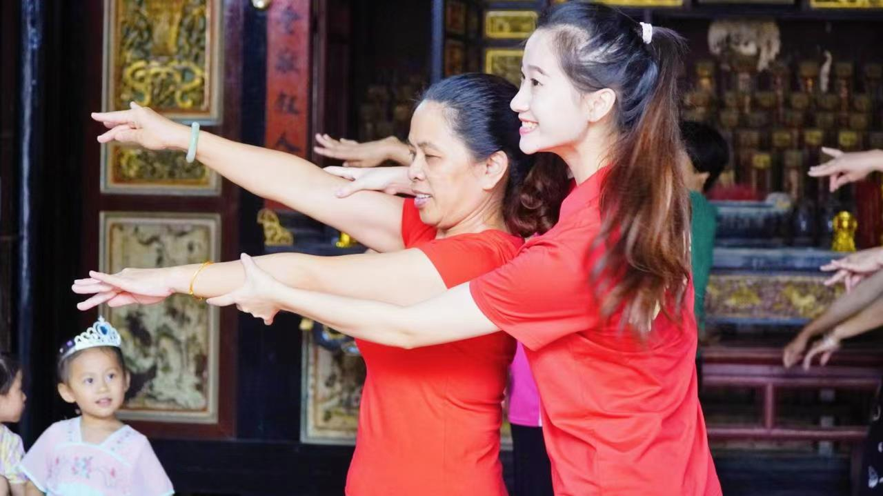 在厦门市“侨乡”曾厝村,实践队立足曾厝村的红色文化基因以及居民的舞蹈需求,选取了歌曲《九儿》进行舞蹈编创。村民们在陈氏家庙中翩翩起舞,以舞蹈延续红色基因,续写新的故事。走进拥有众多舞蹈爱好者的官路村,实践队成员将今日和睦的官路村氛围与过去长辈们“十送红军”的团结精神融入了《十送红军》的红歌舞蹈编创中,在编舞中唤起他们对舞蹈和红色文化的美好回忆,将官路村的团结和凝聚力在舞蹈中跳得尽善尽美。在美山村,志愿者们走进老年人幸福院,用舞蹈丰富老年人的生活。