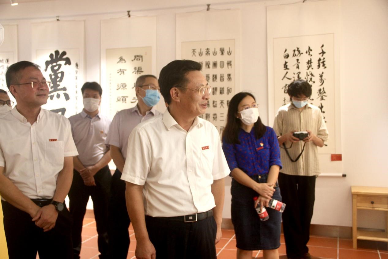 沈灿煌、童建福共同为书画展揭幕,并与全体人员一同参观书画展。