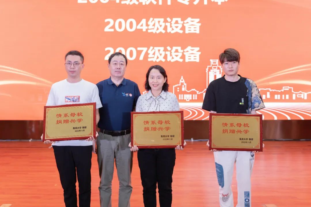 大会还举行了捐赠、授牌、签约仪式。校党委书记沈灿煌代表学校接受校友捐赠并回赠牌匾。副校长于洪亮为捐赠的班集体和校友代表授牌。港口与海岸工程学院与企业单位签署合作协议。