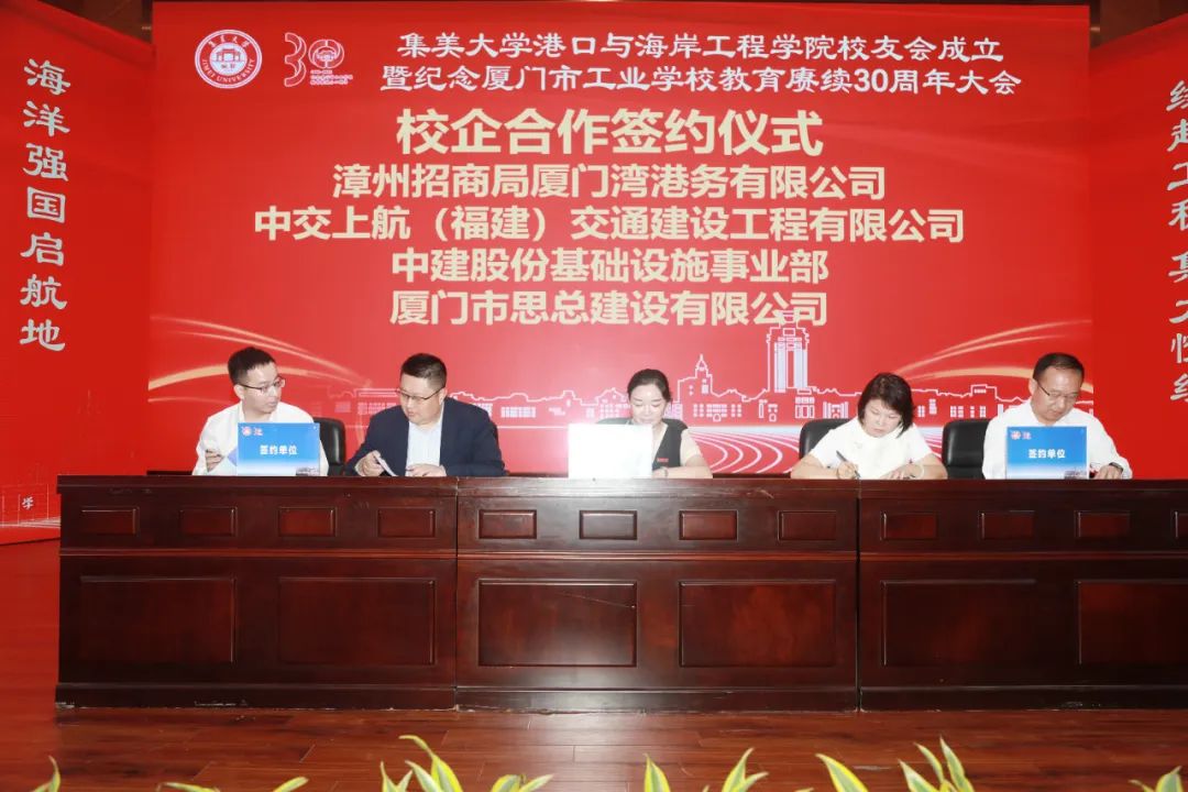 厦门港口管理局党组书记、局长夏长文,厦门市交通运输局总工程师林树枝,厦门市海洋发展局总工程师林怀远,中交海西区域总部党工委副书记、纪工委书记、副总经理刘永贤,港口与海岸工程学院校友会会长、厦门思总建设有限公司董事长詹毅鹏,厦门翔菱实业有限公司董事长陈云南校友代表赵立,厦门厦鑫物流园管理有限公司董事长王海源,集美校友总会代表、合作单位代表、各地校友代表、兄弟学院校友会代表,集美大学历任老领导、现任校领导、校友总会领导,港口与海岸工程学院历任老领导、现任领导及师生员工相聚校园,共同见证港口与海岸工程学院校友会成立,纪念厦门市工业学校教育赓续三十周年,展望未来建设发展美好愿景。大会由副校长曹敏杰主持。