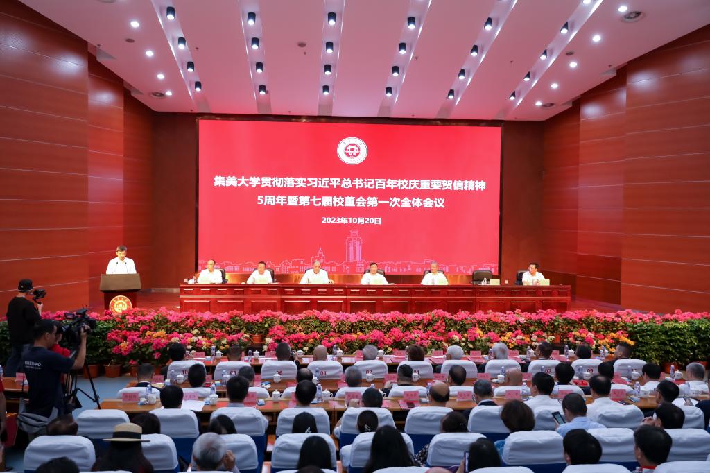 10月20日上午,集美大学召开贯彻落实习近平总书记百年校庆重要贺信精神5周年暨第七届校董会第一次全体会议。福建省人民政府副省长常斌,全国台湾研究会第七届理事会会长、第六届校董会主席汪毅夫,福建省委教育工委书记、教育厅厅长叶燊,厦门市人民政府副市长廖华生,校董会副主席、尚大集团董事长李川羽先生,集美区委书记胡旭彬,校主陈嘉庚先生后裔、陈文确陈六使先生后裔等海内外校董校友,集美大学全体校领导、师生代表参会。会议由叶燊主持。