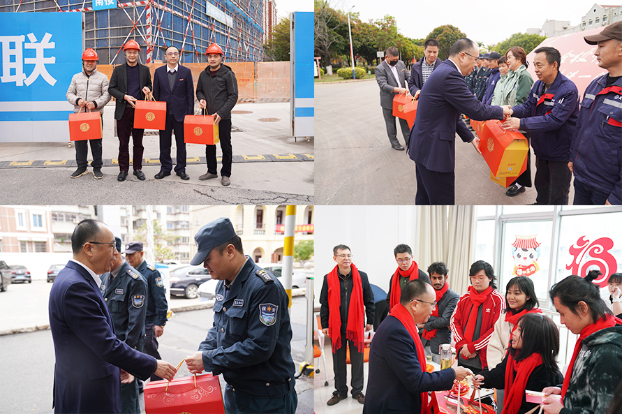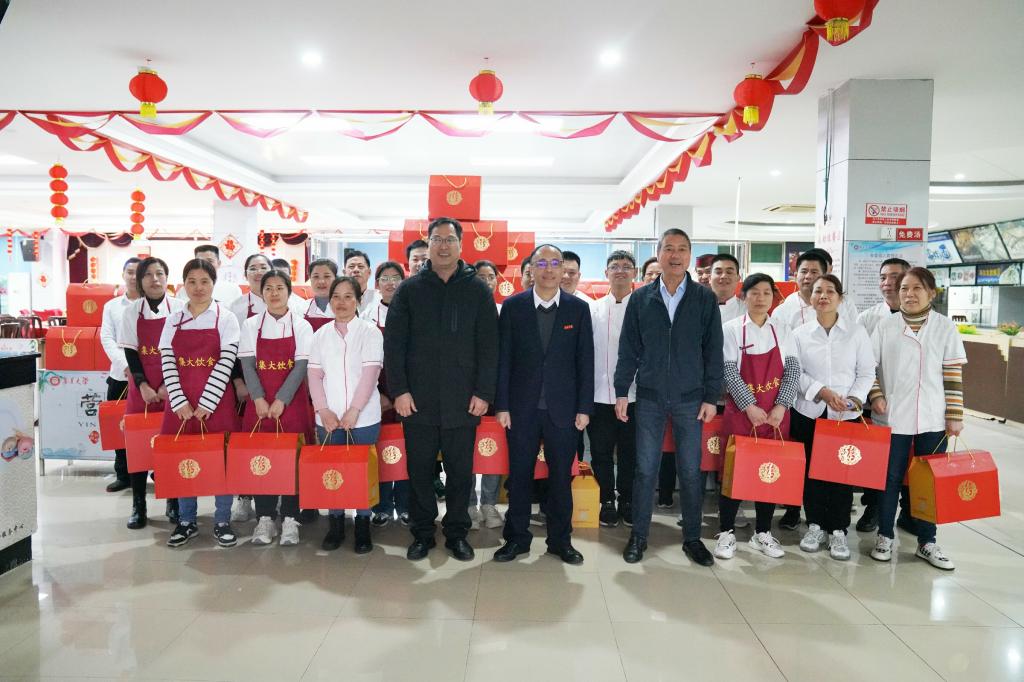在欢乐吉祥、辞旧迎新之际,2月8日,校长谢潮添、校党委副书记洪文建代表学校党委和行政,带领学校有关部门负责人,到学校总值班室、六社区6#组团学生公寓在建工地、各校区门岗、食堂、学校监控中心等地慰问留校师生、坚守岗位的工作人员和学村派出所民警,送上节日问候和新春祝福。