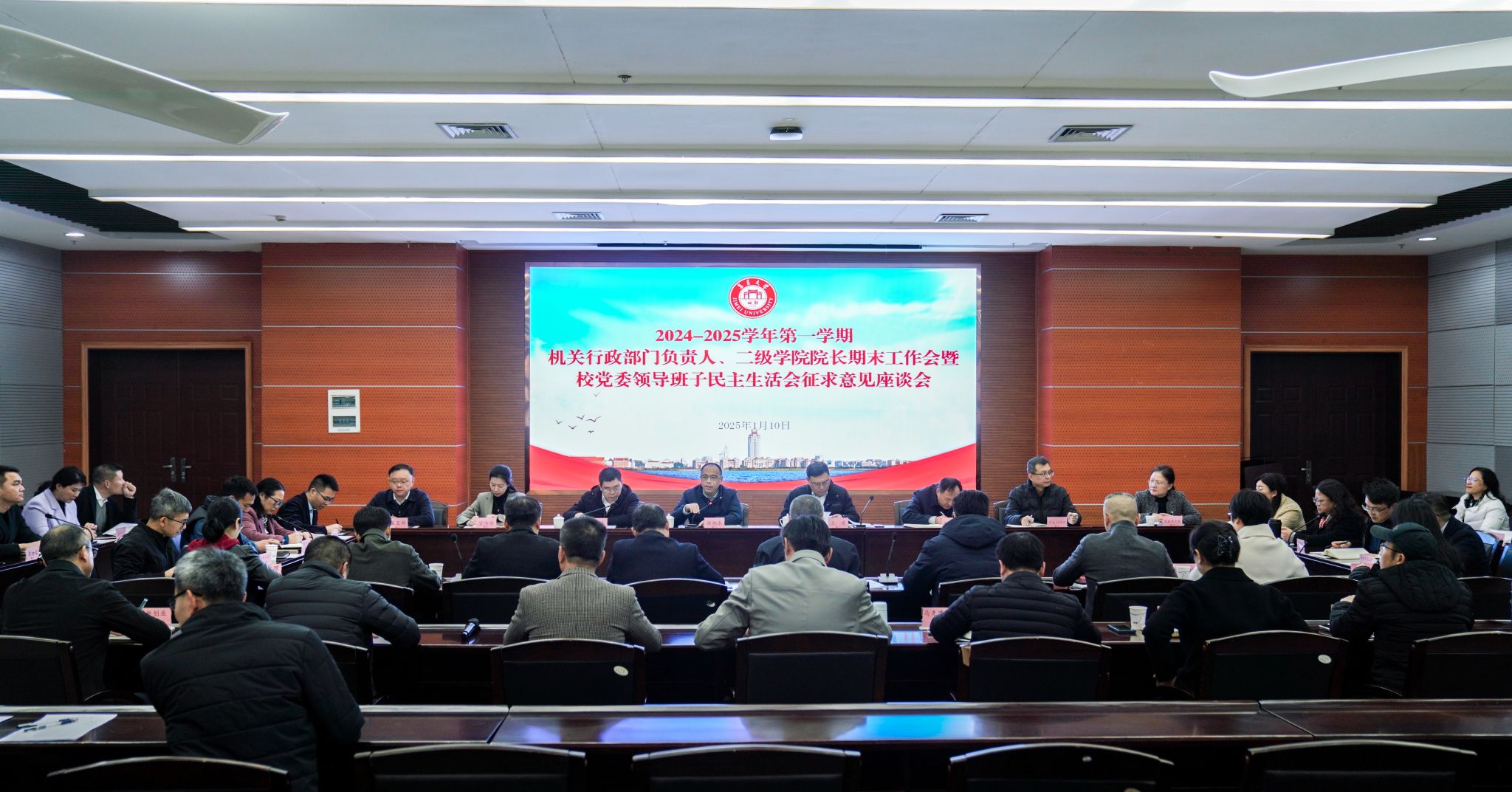 1月10日下午,校长谢潮添主持召开2024-2025学年第一学期机关行政部门负责人、二级学院院长期末工作会暨校党委领导班子民主生活会征求意见座谈会。副校长王建、黄新华,机关行政部门负责人和二级学院院长参加会议。