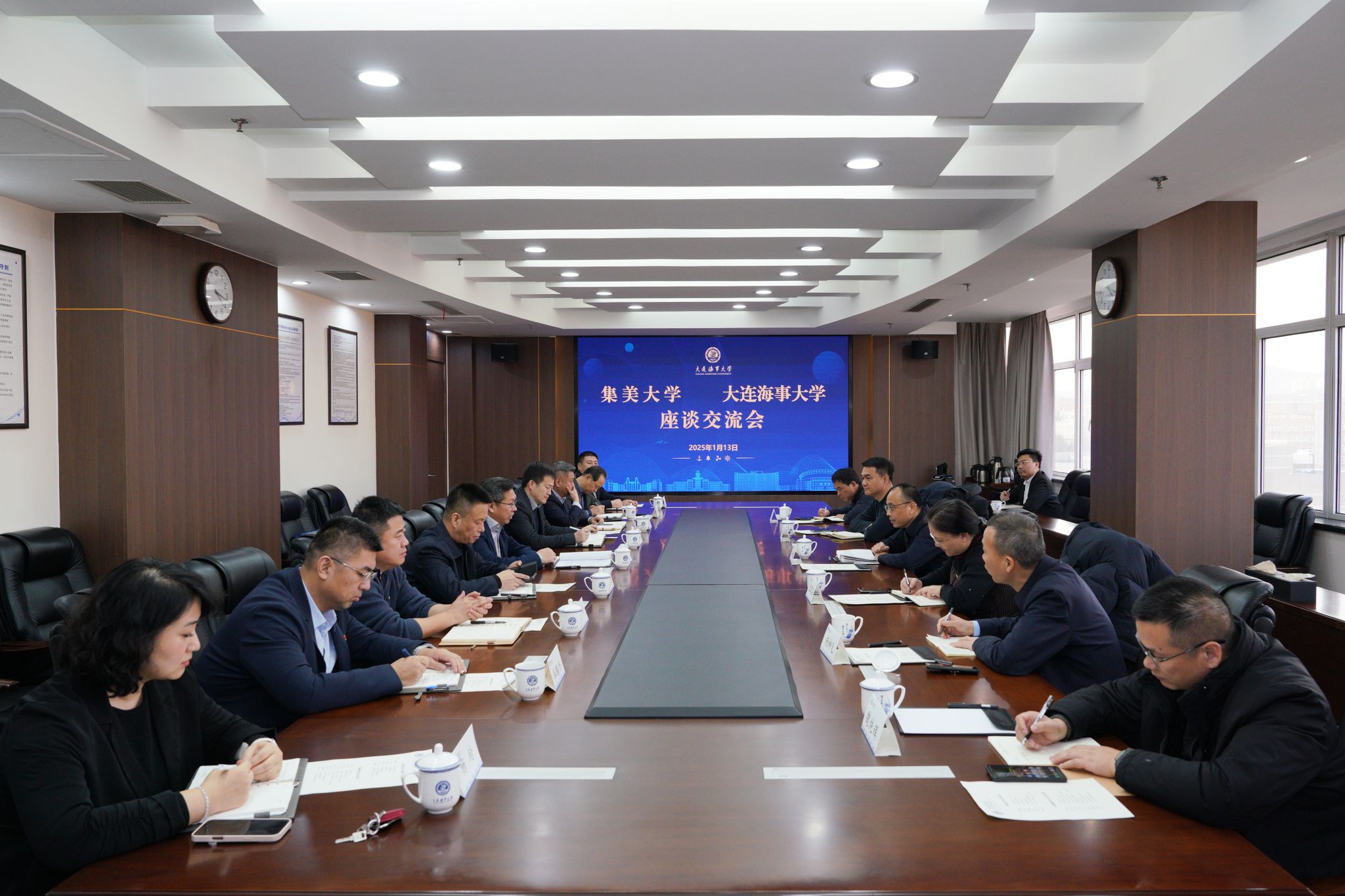 1月13日,校长谢潮添带队前往大连海事大学调研交流,双方就人才培养、人才引进、交通强国试点建设、航海类师资队伍建设、智库建设、科技成果转化等方面进行了深入交流研讨。大连海事大学党委书记许民强、副校长曾庆成,以及党委办公室、校长办公室、党委教师工作部、人事处、教务处、人文社科研究院、航海学院等单位负责人参加座谈。