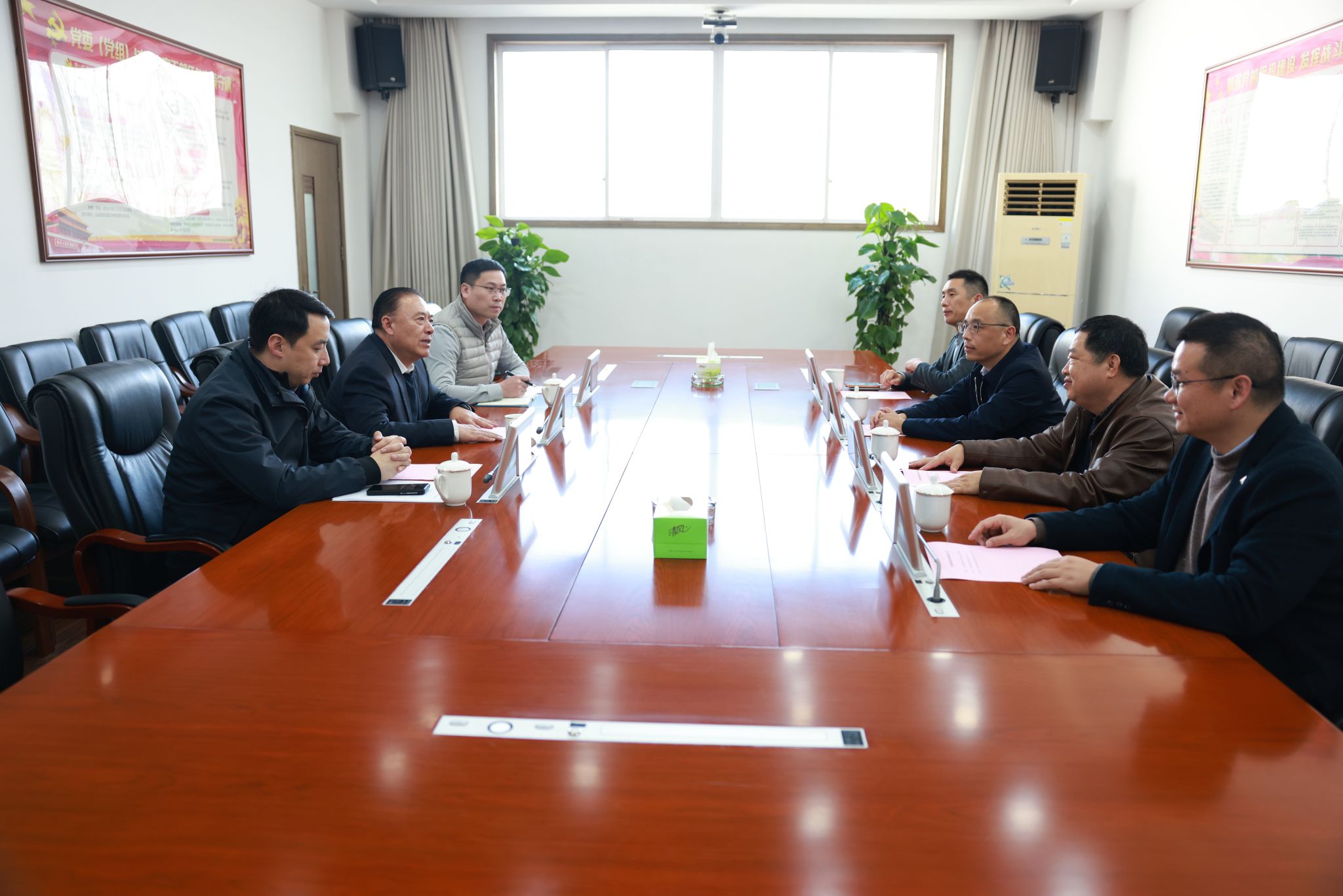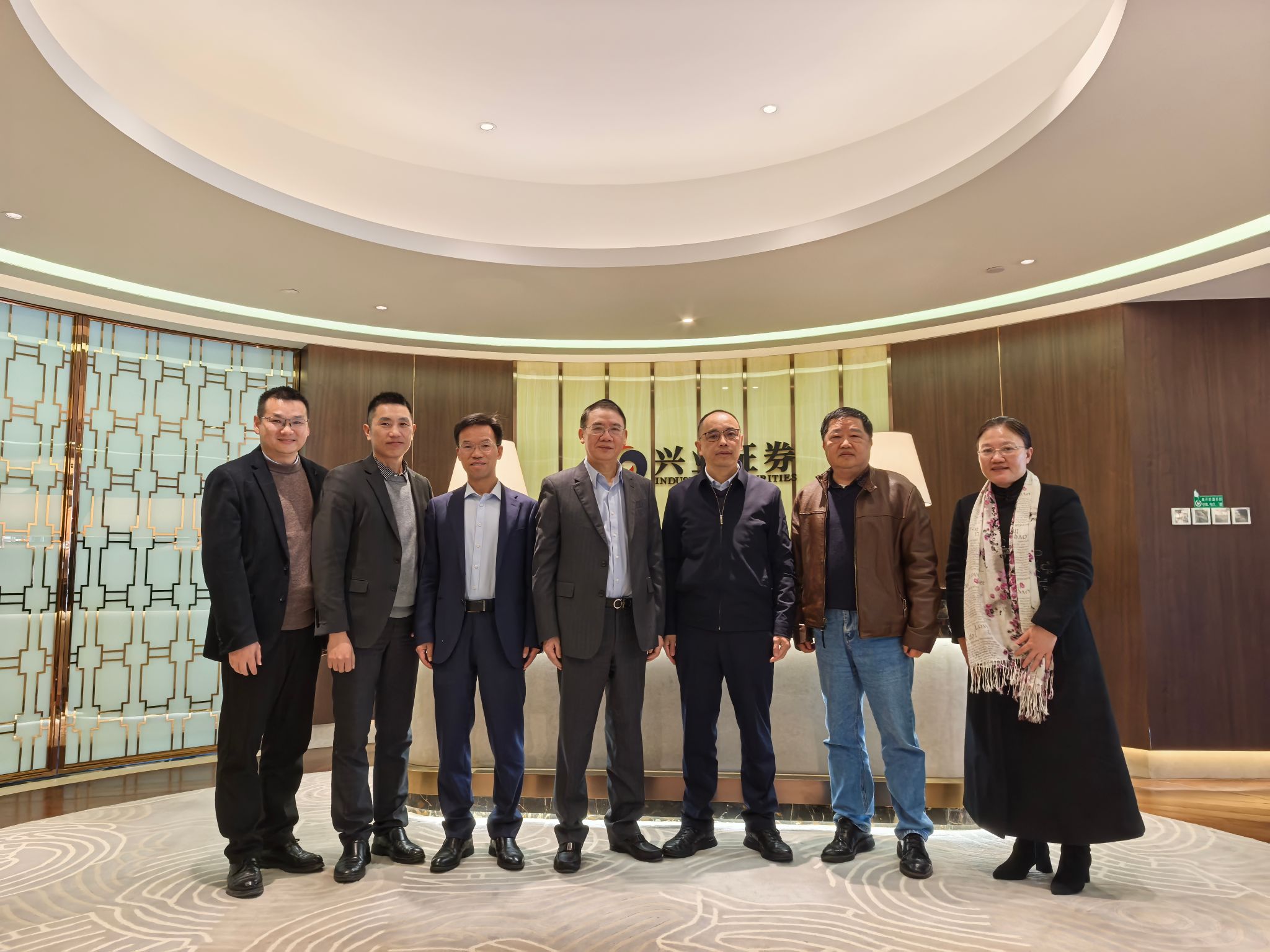 在兴业证券股份有限公司,我校校友、公司董事长杨华辉,我校校董、校友、公司首席财务官许清春及行政部、人力资源部等部门负责人与谢潮添一行座谈。双方就智库建设、博士后培养、人才培训等方面进行了深入探讨交流。