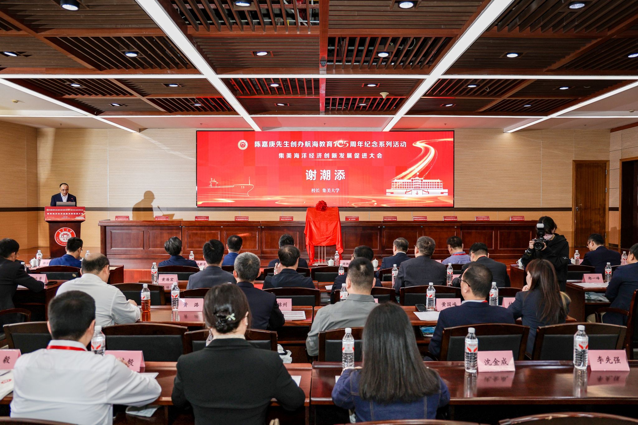 12月6日下午,陈嘉庚先生创办航海教育105周年纪念活动暨集美海洋经济创新发展促进大会召开。校长谢潮添,集美区政府、厦门出入境边防检查总站、厦门海事法院、厦门海警局等单位的领导,中远海运散货运输有限公司董事、总经理陈新川,中远海运特种运输股份有限公司副总经理蔡连财,中远海运船员管理有限公司原总经理王新全,以及来自政府部门、行业组织、企业、高校及科研机构的代表,与海内外校友和师生代表齐聚一堂,共襄盛举。