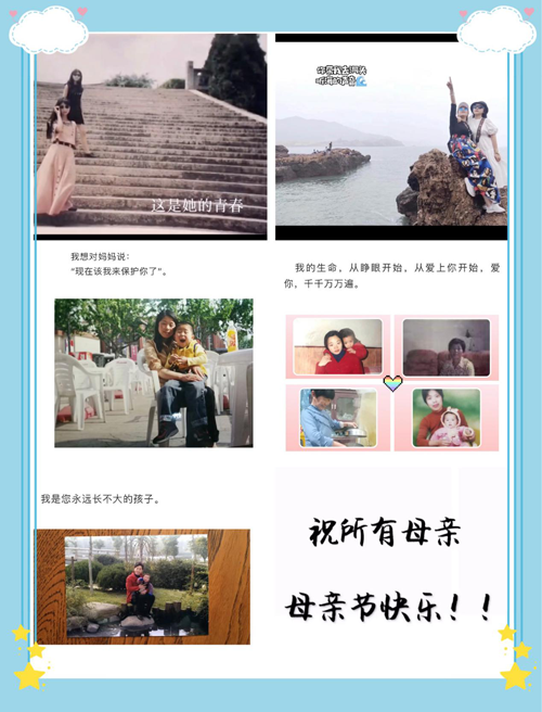 本次活动依托新媒体举行,以图文、视频形式,展示学院6位学生母亲年轻时的照片和与母亲的合影,讲述暖心故事,抒发情感、表达祝福。