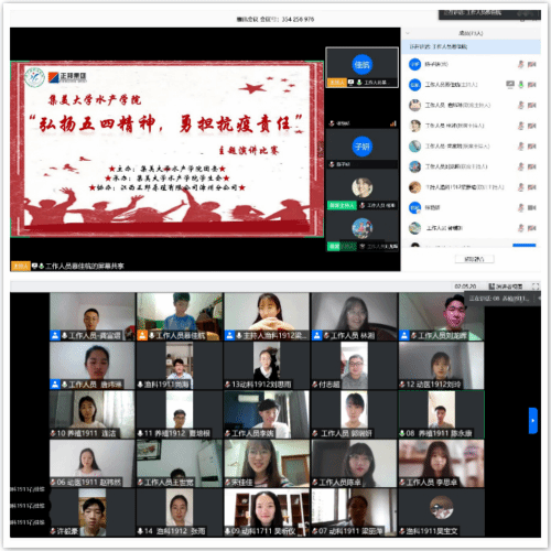 近日,水产学院团委与江西正邦养殖有限公司漳州分公司联合依托腾讯会议举办2020年“弘扬五四精神,勇担抗疫责任”线上演讲比赛,以进一步弘扬五四爱国精神,活跃疫情期间学生抗疫文化生活。