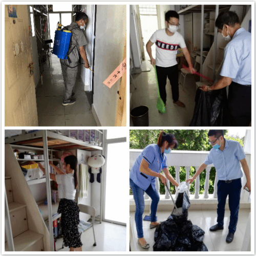 学院检查组对毕业班学生宿舍进行全面摸排,对学生宿舍中存在的门锁损坏、私拉电线、违规电器等安全隐患逐一排查,对宿舍进行全面的清洁和消杀,并演练了学生发热的应急处置流程,及时解决学生宿舍安全隐患问题,为学生安全有序返校复学创造干净、整洁的宿舍环境。