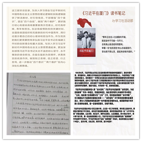 会议前,学习社成员认真学习了三部采访实录。会议中,学习社成员积极发言,分享了自己在实录中读到的故事和体会到的相关精神,也制作了“学实录 悟真理”摘录习近平总书记在福建工作采访实录内容的系列图片展示。