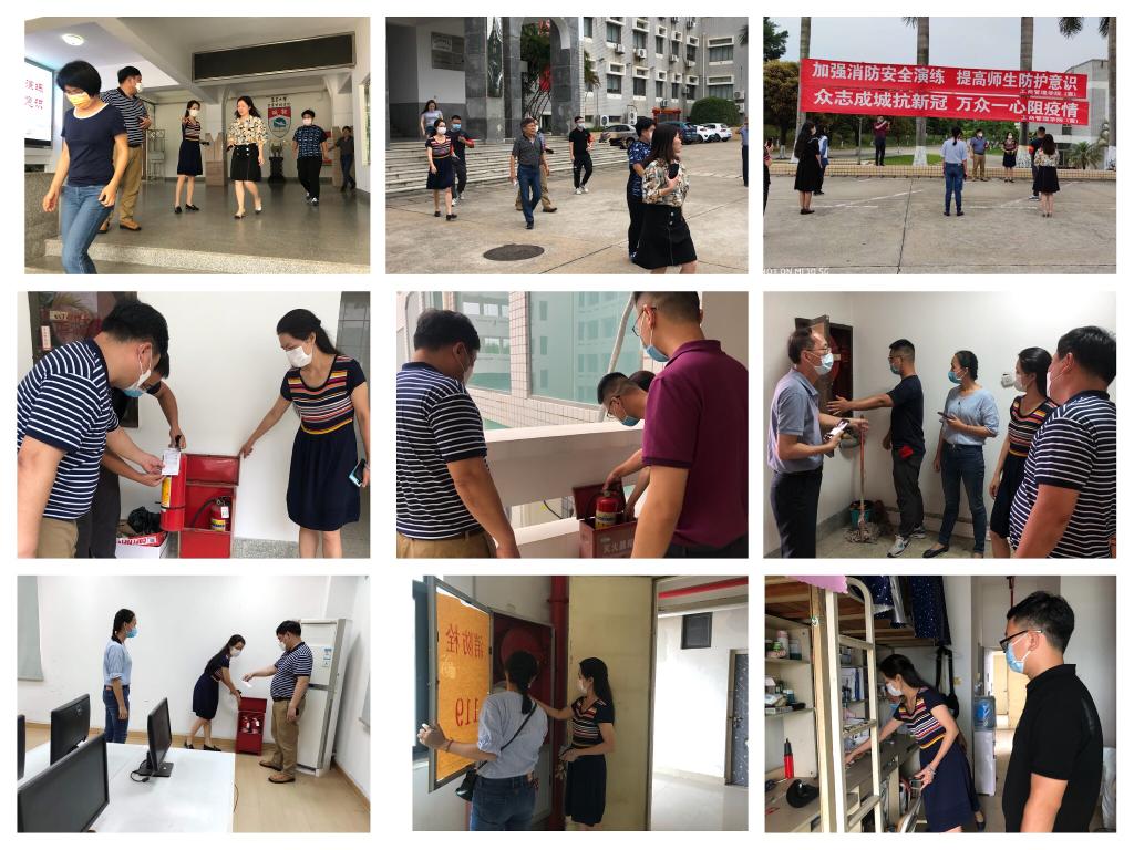与此同时,学院领导、相关部门负责人一行还对学院教学区域、实验室、办公区域进行安全隐患大排查,重点检查消防设施、器材配置的完好和有效情况,并对其他消防隐患提出具体的整改意见。学院领导与辅导员一行还前往学生宿舍进行消防安全检查,对宿舍区域消防灭火设备、违规电器等其他安全隐患进行仔细的排查。