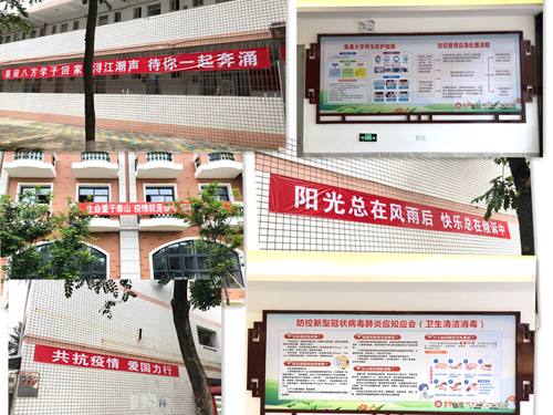 近日,海外教育学院根据学校疫情防控工作指挥部的部署,认真做好学生返校复学前的宣传和氛围布置工作。通过在办公楼、学生宿舍布置展板、悬挂横幅、张贴海报等形式发布疫情防控常识、学校应对新冠肺炎疫情处置流程等宣传海报和标语,普及疫情防控知识,营造返校的温馨氛围,为学生返校复学做好准备。
