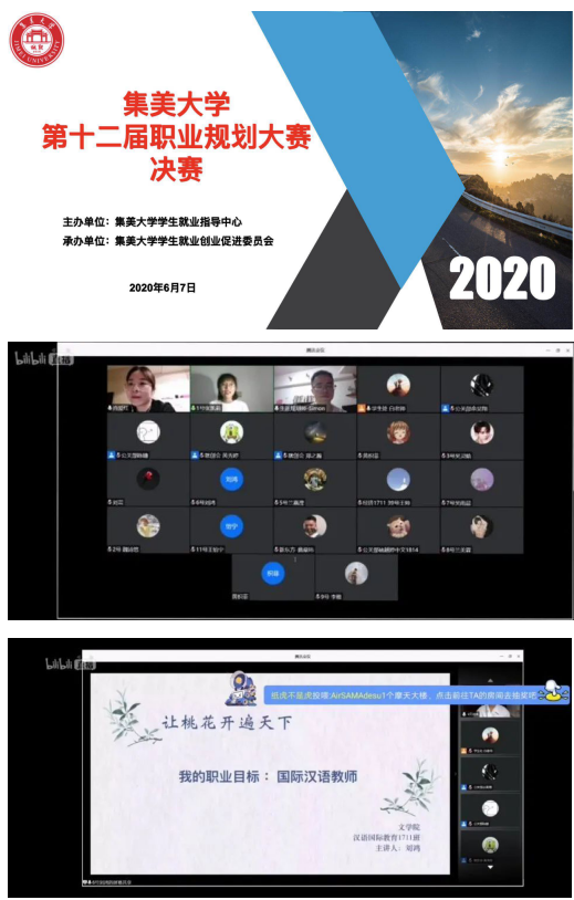 6月7日晚19点,集美大学第十二届大学生职业生涯规划大赛决赛正式拉开帷幕。受疫情影响本次决赛采用线上比赛形式举行,同时通过我校学生就业指导中心“哔哩哔哩”官方平台进行同步网络直播。本次大赛由集美大学学生就业指导中心和学生就业创业促进委员会联合承办,并邀请了四位在大学生职业规划领域的专业老师担任大赛评委。