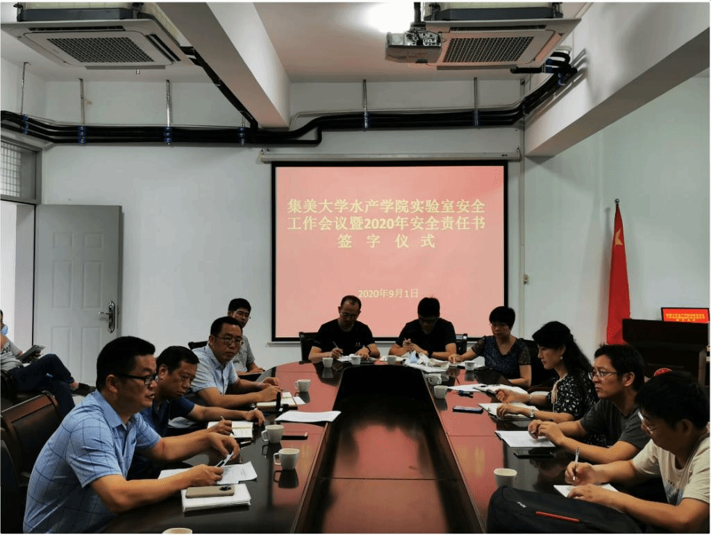 9月1日,水产学院召开实验室安全工作会暨2020年实验室安全责任书签字仪式,全面落实学校实验室安全大检查的要求。全体院领导、本科实验室、水产试验场、各科研平台、团队负责人参加会议。