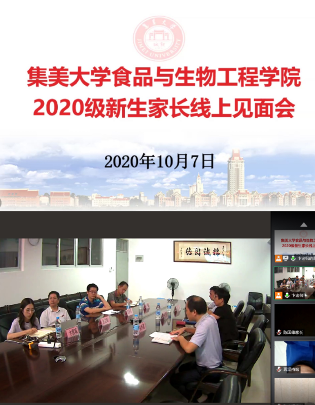 为让2020级新生家长更加全面深入地了解学校的校园文化生活和专业人才培养情况,食品与生物工程学院于10月7日通过腾讯会议召开2020级新生家长线上见面会。学院领导、系主任、团委副书记及辅导员参加了此次见面会。见面会由学院党委副书记朱坤道主持。