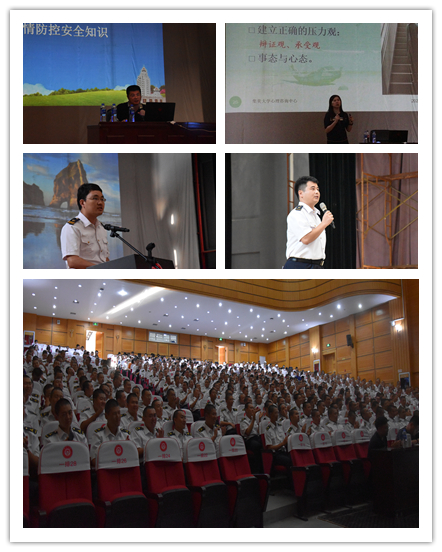 保卫处处长董振寿从疫情防控安全、交通安全、人身安全、防盗防骗、防火用电安全、食品安全等方面给新生详细讲解安全注意事项;学生心理咨询中心教师周鸣从大学生新生活将面临的变化、变化带来的适应问题、大学生心理适应的对策三个方面,讲解了新生有可能会遇到的问题和解决的办法,针对半军管制度下的身体与心理素质的训练给出具体建议;教师赖龙荣则对新生做了入党启蒙教育,他从入党流程、入党条件、党员权利、党员义务等方面给新生做了全面介绍,帮助新生端正入党动机;辅导员向新生介绍了半军管制度,对航海类专业学生如何遵守半军管提出了具体要求。