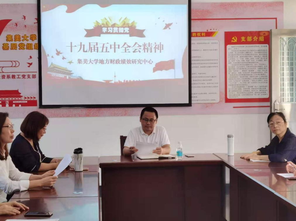 11月18日,集美大学地方财政绩效研究中心于财经学院文学楼101会议室组织基地骨干专题学习党的十九届五中全会报告,会议由集美大学地方财政绩效研究中心副主任胡志勇教授主持。