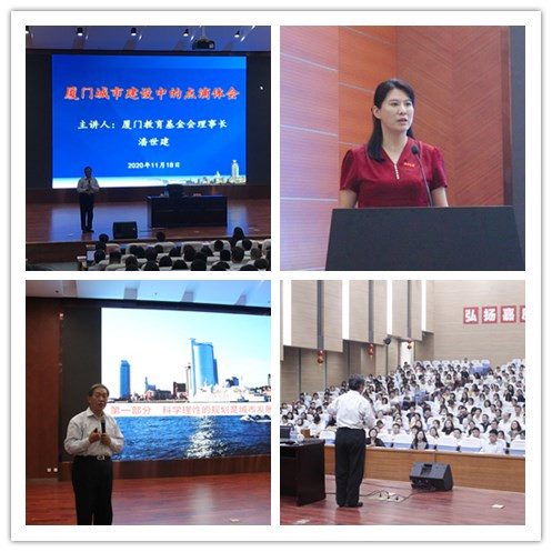 潘世建热情阐释厦门城市建设科学理性的规划、生态保护的理念和文化提升的积淀。潘世建用448张图片回溯厦门城市建设的历史脉络与文化记忆,让师生体会城市建设的艰辛,领略厦门城市发展的生命线、主旋律和软实力。