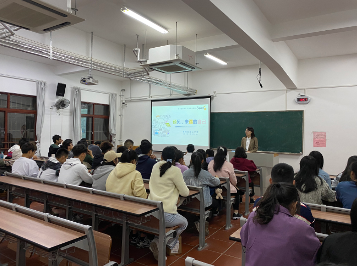 讲座中,毛琦璐从你从哪里来,你是谁,你要哪里去这三个问题开头,引发同学们思考。毛琦璐提供了不同生活环境和不同工作需要的选项,并给予了选项相应的个人性格特征以及本身所追求的生活,让同学们了解自身所应努力奋斗的方向。