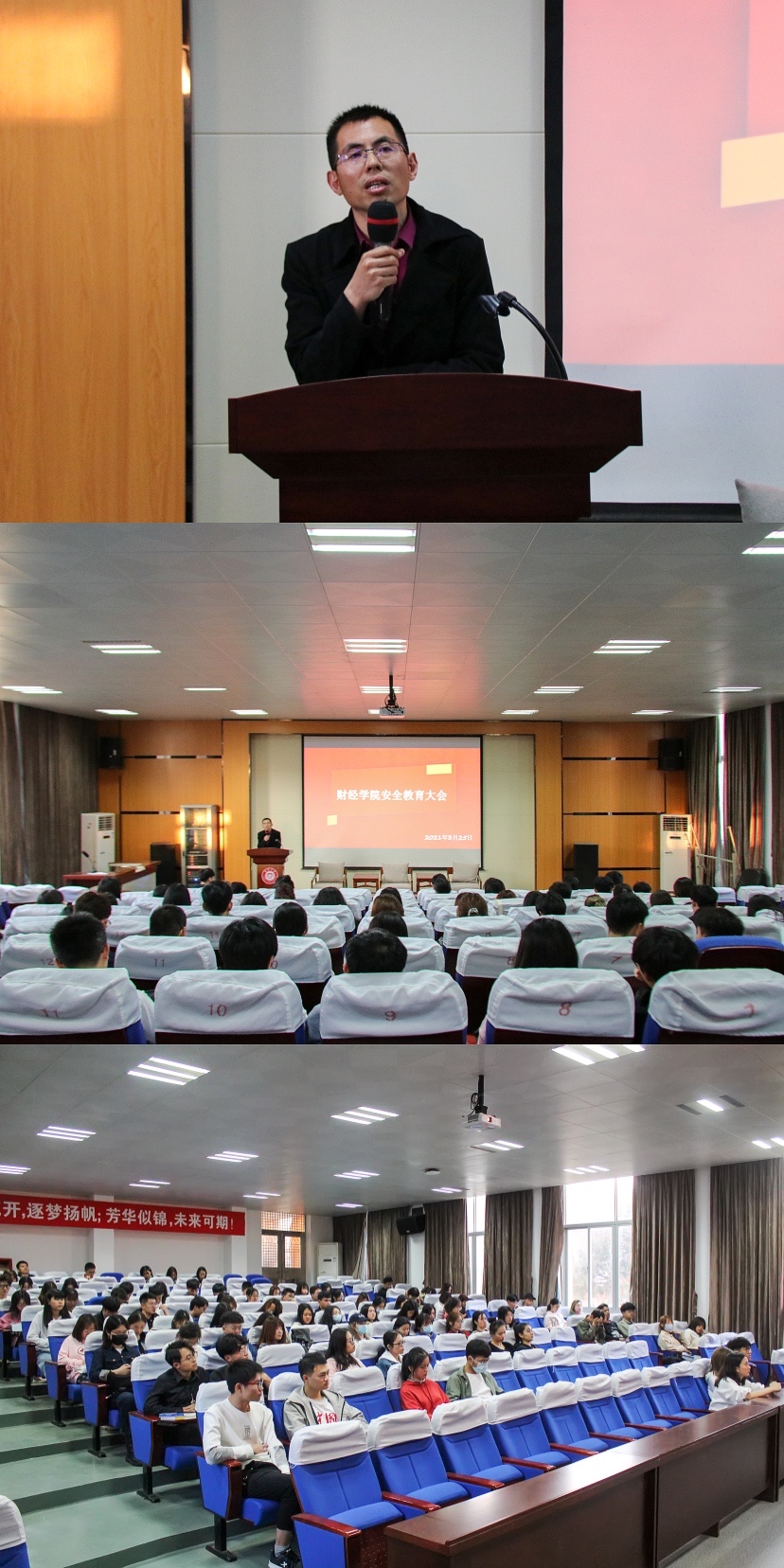 为构建和谐、平安校园,提高学生的防诈骗意识,增加学生的安全知识,3月25日下午,财经学院于财媒体三楼多功能厅召开安全教育大会。会议由院党委副书记李海川主持,学院各班班长、团支书参加会议。
