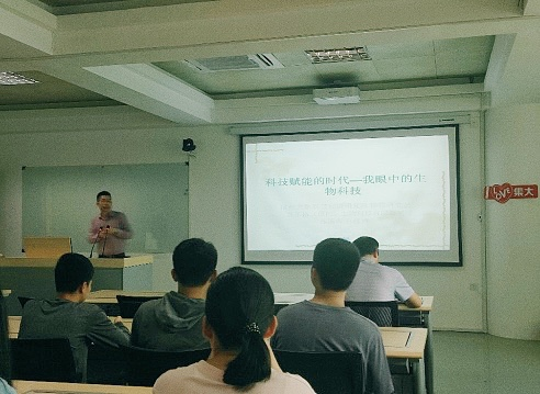 苏清海在讲座中结合科学知识、人类健康、食品安全的困境、转基因等多方面向同学们普及生物常识。同时,他从科学观、企业家精神和科技的角度讲述了生物科技在疫苗、药物、功能食品和交叉学科等方面的发展方向,鼓励同学们夯实专业基础,提高专业素养和实践能力。