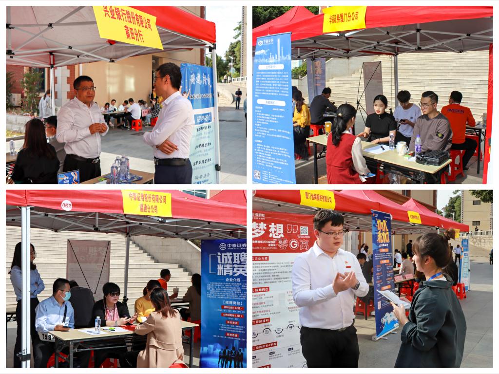 4月10日下午,财经学院举行2021年春季财经类专场双选会。本次双选会,学院与厦门证券期货基金业协会合作,共吸引兴业证券厦门分公司等证券、期货、基金、资产管理等企业六十余家,同时还有大华会计师事务所、谷川联行有限公司、金牌橱柜股份有限公司、兴业银行莆田分行、艾伟森国际有限公司等,共计121家用人单位参展。