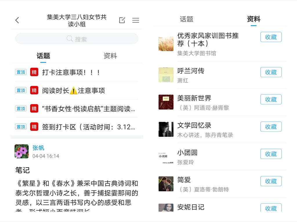 活动于三月中旬启动,历时20天,共吸引近300名女教职工参加。参与活动的女教职工通过“超星学习通”APP在“共读小组”中选择感兴趣的电子书籍进行阅读及话题讨论,电子书籍涵盖女性名家名著、诗情画意、职来职往、幸福的秘密、优良家风五个主题,由图书馆推送。根据读者时长和话题情况综合评选,最终,114名女教职工入围获奖。