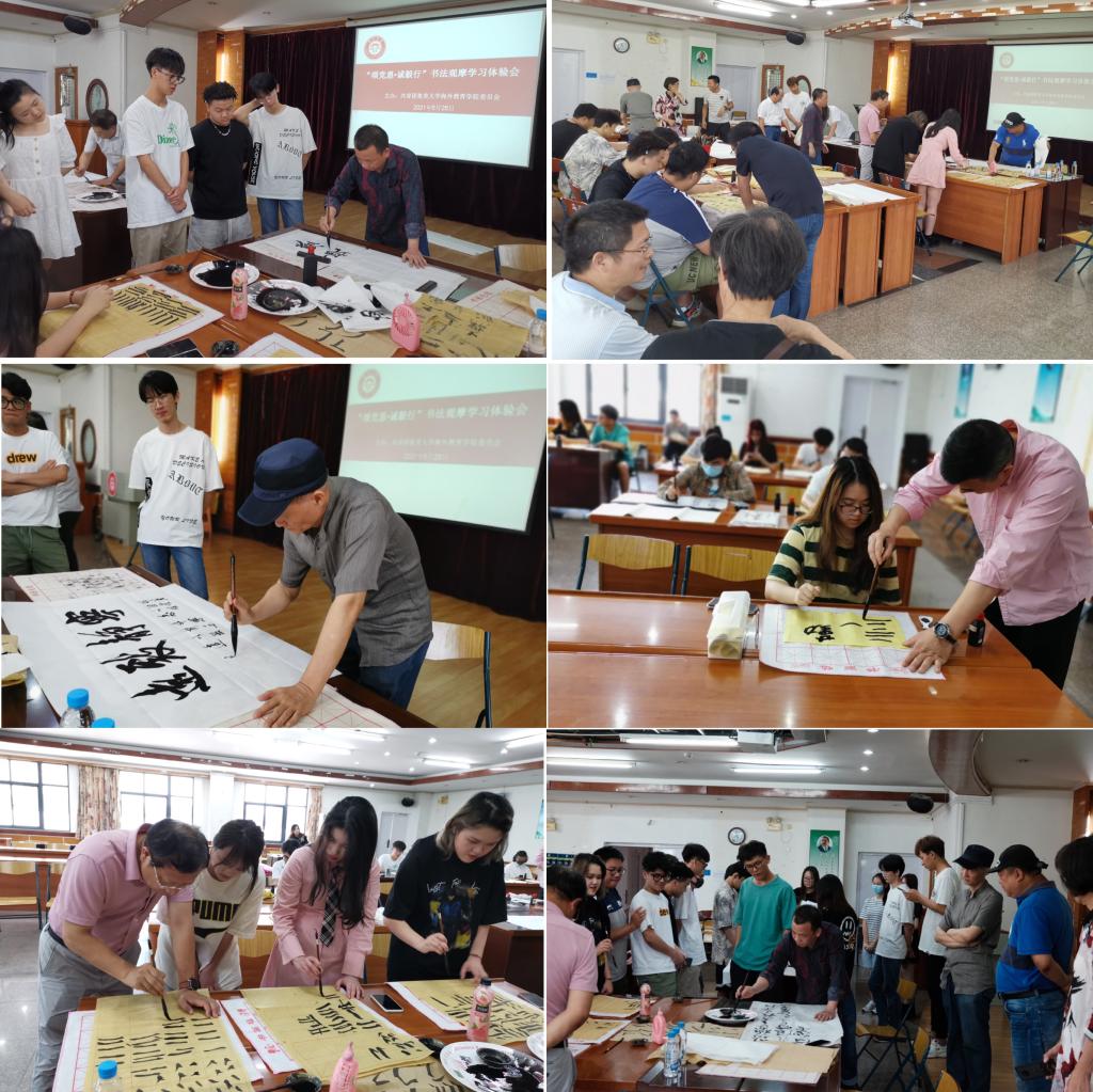 5月25日,海外教育学院组织开展“颂党恩•诚毅行”书法观摩学习体验会。学院党委副书记陈茂才、团委副书记邢龙森、相关老师和近30名书法兴趣小组学生参加观摩学习体验。