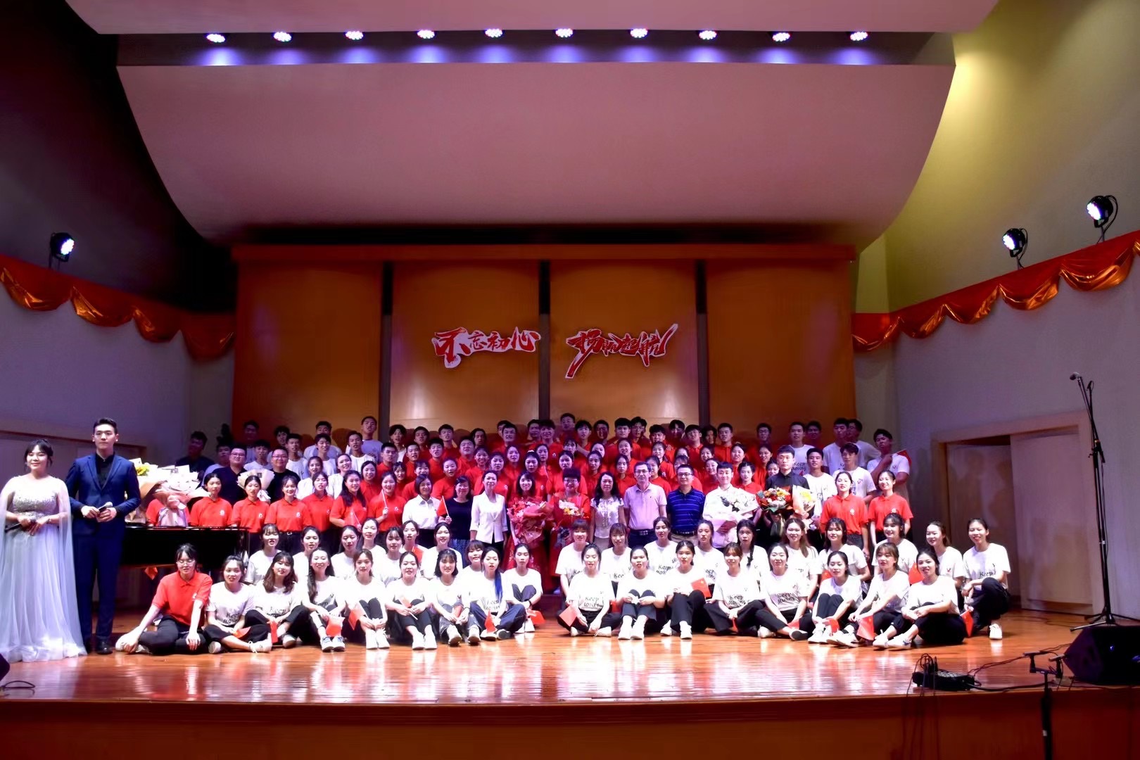 音乐会在歌曲《不忘初心》中拉开了帷幕。沐音合唱团在林靖老师的指挥下,和着林雨诗老师的钢琴伴奏,先后演唱了《彩红》《月光笺》《我们》《我爱你中国》等歌曲,温暖真诚,牵动心弦。