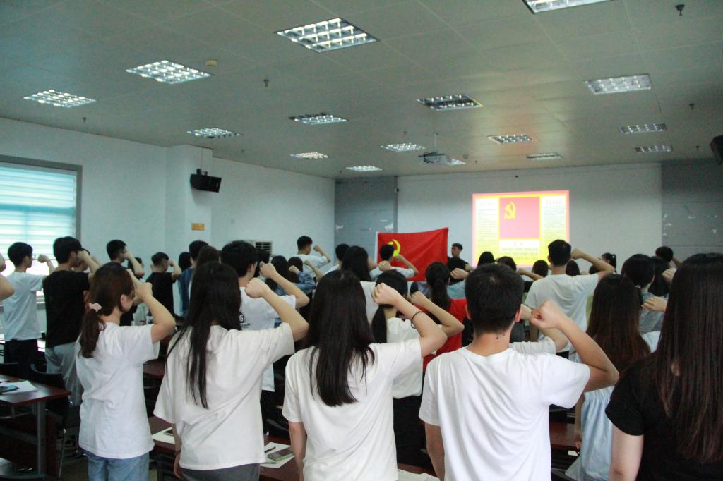 在宣誓仪式上,全体新党员在党旗面前庄严宣誓。新党员代表陈雨涵同学作了发言,并代表全体新党员郑重承诺:增强党员意识,锤炼党性修养;牢记初心使命,主动担当作为;展现奋发姿态,投身时代大潮。最后学院党委组织员林婉玲老师对新党员提出要求,要求全体党员要坚定理想信念,加强党史学习,从党的非凡百年历程当中汲取力量,增加自信,提升自身本领;要立足于学生本职,认真学习科学文化知识,锤炼过硬本领,把个人的追求,个人的理想融入到党和国家的事业当中,真正的求真学问,学真本领,长真才干,用科技回报社会和国家;要强化使命担当,牢记全心全意为人民服务的根本宗旨,在同学中起到表率作用,勇挑重担,多做贡献,积极充分发挥共产党员的先锋模范作用。
