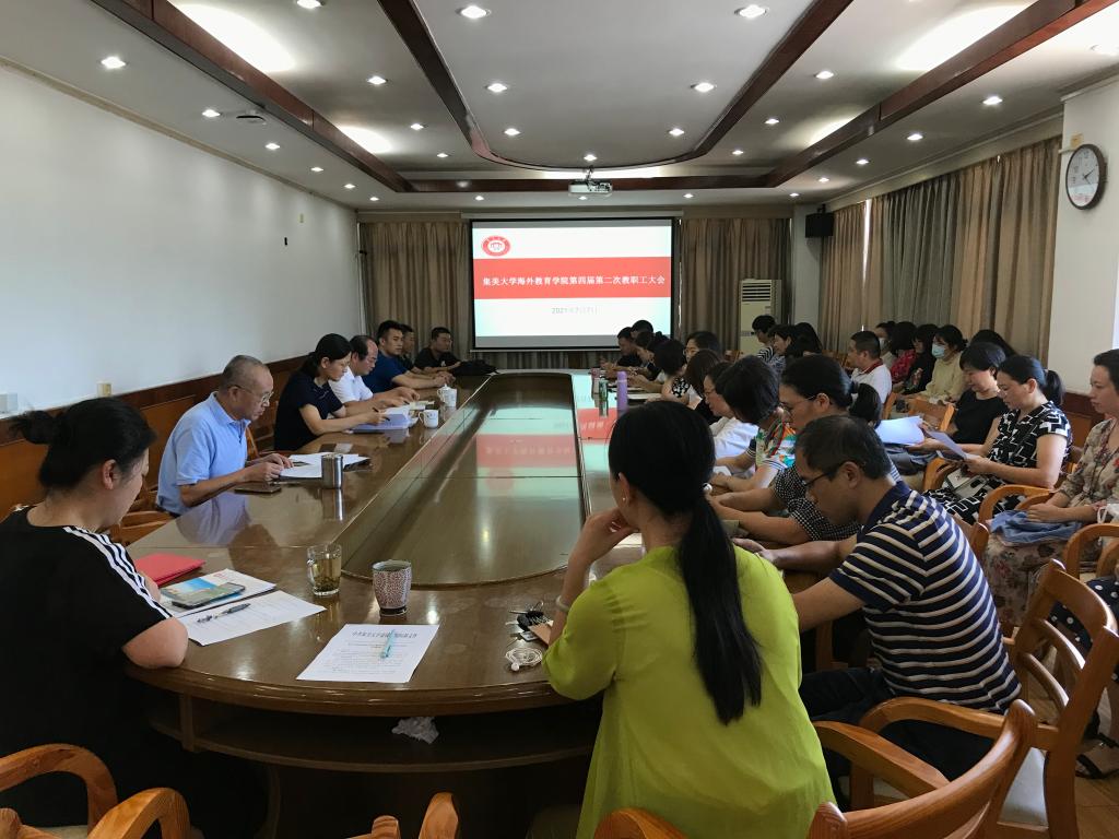 7月7日下午,海外教育学院召开第四届第二次教职工大会。大会由党委副书记陈茂才主持,全院教职工参加。