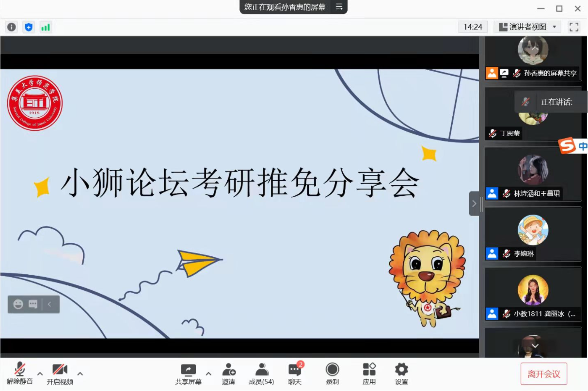 10月2日下午,师范学院于线上举办“珍惜现在,把握未来”考研推免主题论坛活动,学院2022届5名获得推免资格且已被相关高校拟录取学生应邀主讲。