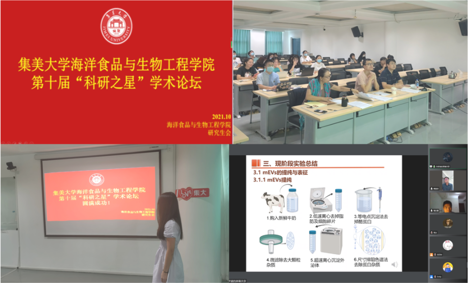 近日,海洋食品与生物工程学院举办了以“提升新时代人才科研素养”为主题的第十届研究生“科研之星”学术论坛。本次论坛历时三天,分为食品科学、生物技术、食品安全监测与农产品、水产品等四场专题论坛。依托学院研究生会,采取线上线下相结合的方式,全体在读研究生参加了本次论坛,并有近50名研究生在论坛上做学术汇报。论坛还邀请到学院各研究领域的教师代表出席并担任评委。