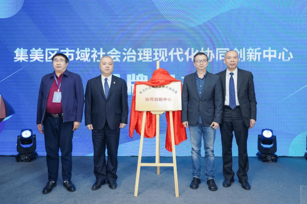 会上,海洋文化与法律学院与集美区委政法委、江西财经大学江西新时代社会治理研究中心共同揭牌成立了“集美区市域社会治理现代化协同创新中心”,合力搭建基层社会治理创新平台。海洋文化与法律学院将以此中心为依托,辐射市域基层社会治理研究,推动学生专业实务实习,助力理论研究与实践探索,协同智库与学科双轮驱动机制,创新市域社会治理机制。