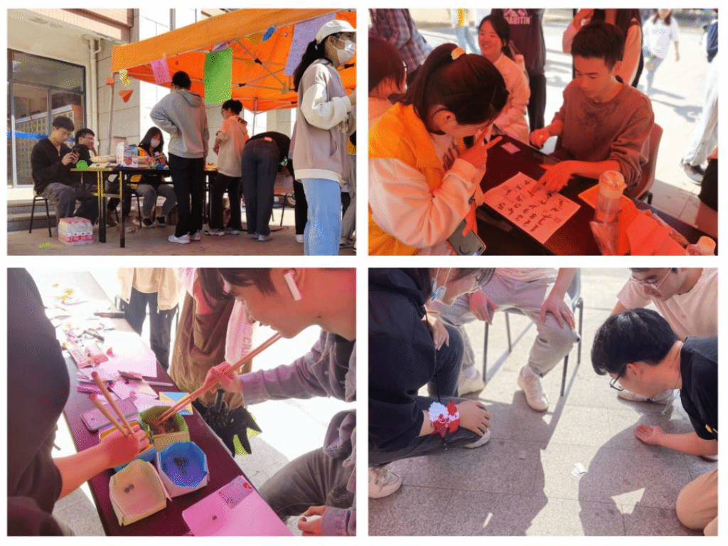 活动现场设置多处互动区域,各区域围绕“谁是挑战王”“踢毽子比拼”“童年影视大回答”“限时拼图”“放飞纸飞机”等主题游戏,开展学生间的互动交流,现场氛围活跃。本次活动有效引导了学生树立科学心理健康观、掌握心理调适方法,推动营造温馨、稳定的校园氛围。