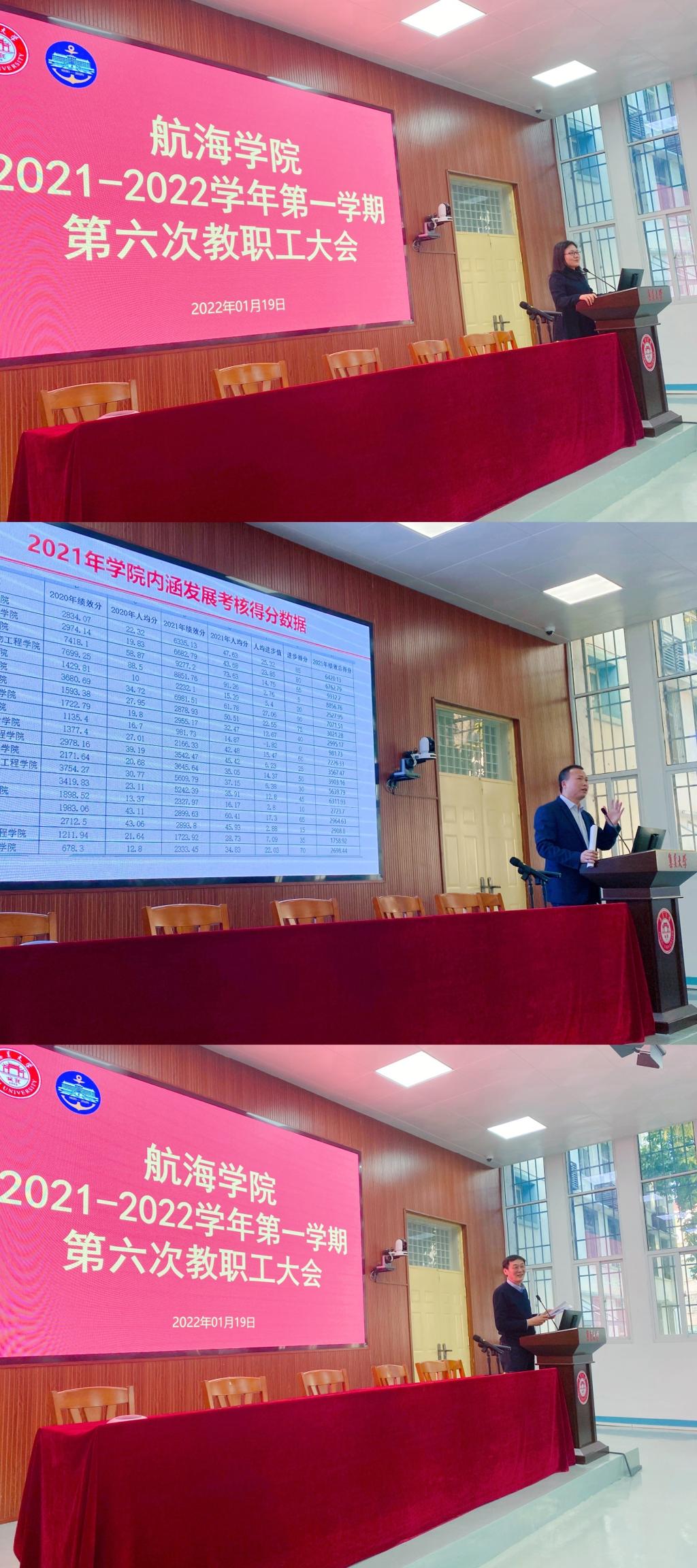 1月19日,航海学院召开2021-2022学年第一学期第六次教职工大会。全体教职工参会,大会由院党委副书记曹兆平主持。
