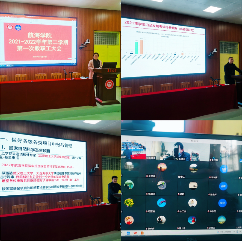 2月20日,航海学院召开2021-2022学年第二学期第一次教职工大会。会议采取线上、线下相结合模式,由院党委书记兰莉芸主持。