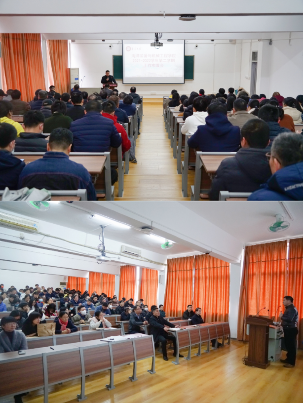 2月20日下午,海洋装备与机械工程学院召开教职工大会,总结2021年主要工作,布置2022年工作要点,传达省2022年春季学期开学工作部署视频会精神,并对春季学期开学疫情防控、校园安全、教学准备等有关工作进行布置。会议由院党委书记陆宝忠主持。