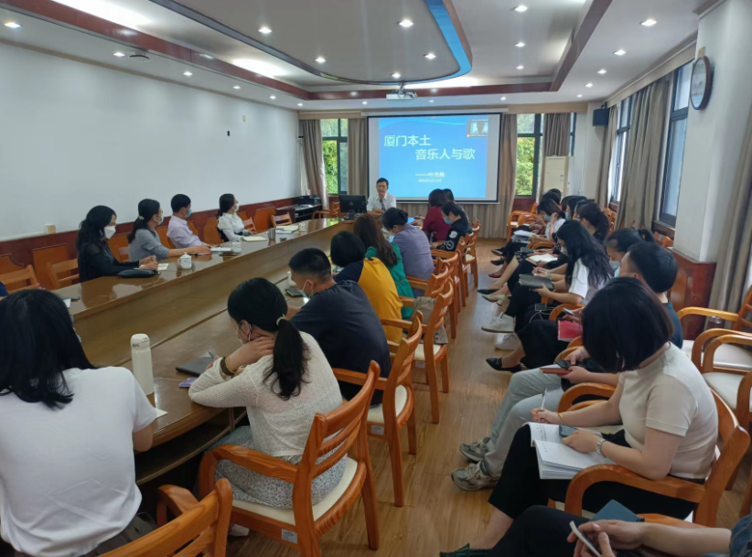 叶光煌以“厦门本土音乐人与歌”为主题,讲述了几代厦门本土音乐名人爱国爱乡,为人民创作,为祖国歌唱的历史往事, 介绍了由厦门本土音乐人和集美校友创作的《延安颂》、《康定情歌》、《中国少年先锋队队歌》、《鼓浪屿之波》等歌颂党和祖国、歌颂家乡和人民的经典音乐作品。