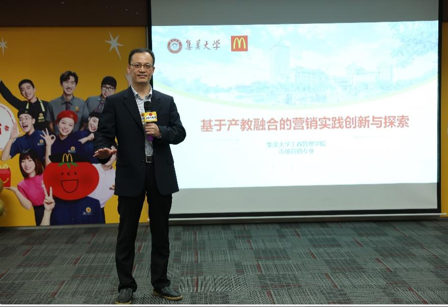 活动中,尤成德老师作为校企合作优秀校方代表在会上作主旨发言,向与会嘉宾介绍集美大学市场营销专业与麦当劳公司共同联合打造的营销管理实践教学创新模式,受到了麦当劳高层领导和各高校的高度关注和充分肯定。集美大学市场营销专业以培养“有责任、强理论、善实践、能创新”的营销管理者为己任,秉承嘉庚精神和诚毅品格,根植厦门,立足福建,面向全国,着力于培养德才兼备的市场策划、电商营销与运营、销售管理等方向的应用型创新人才。专业在扎实的理论课程教学同时,特别注重基于产教融合的创新型实践教学;通过与麦当劳等知名企业开展校企联合、理论教学与企业实战互动的教学实践,提升学生的综合素质和实践能力。目前,已经探索出了富有特色的“一实践五促进”实践教学模式,即通过实践教学促进学生能力提升、促进理论学习、促进三创竞赛、促进思政教育、促进课程建设,实现“三全育人”,并取得了丰硕成果。