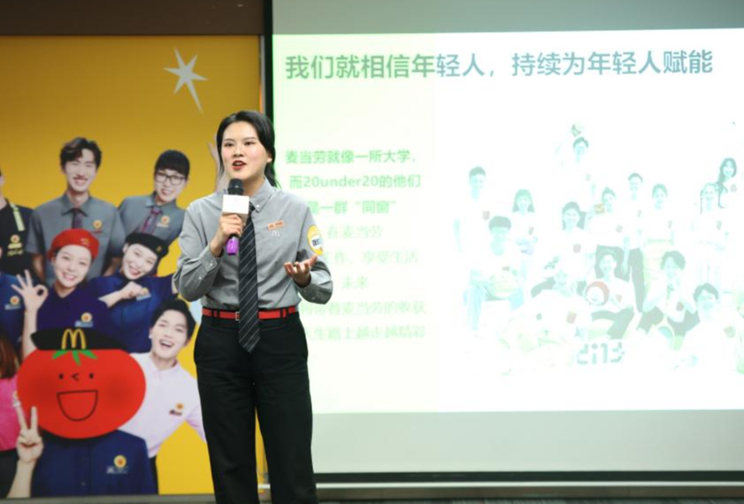 市场营销专业2022届毕业生魏烨雯也在会上作为优秀的签约学生代表进行演讲,分享自2021年底参与校招后加入麦当劳管培生“菁英计划”的5个月麦麦旅程。“菁英计划”是麦当劳公司面向本科重点院校推出的应届生高级人才招募计划,成为名企与名校共同培养商业精英的成功典范。魏烨雯同学是今年麦当劳福建市场唯一录取的“菁英计划”成员,并在2022年3月麦当劳领导力全国课程中,获得了“最佳贡献奖”“最佳团队奖”“最佳小组长奖”三大满贯,即将在今年7月份毕业入职后立即获得晋升。魏烨雯分享了在校期间专业实践教学的收获,以及进入企业实习后的挑战与成长历程。她表示感谢集大市场营销专业的精心培养,感谢麦当劳公司提供的发展平台与系统培训,将会铭记集大校训,诚以待人、毅以处事,在麦当劳公司展现集大营销学子的优秀风采。