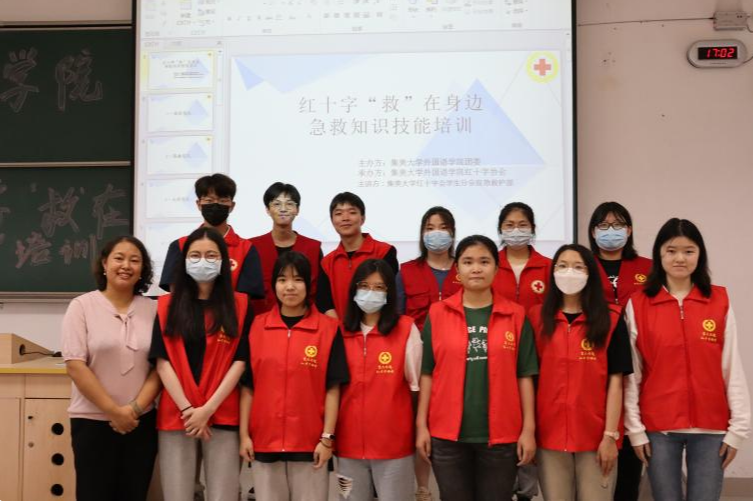 为进一步提高外国语学院同学的应急安全处理能力,5月25日下午,外国语学院在建发304教室开展了“红十字‘救’在身边”急救培训。本次培训邀请了集美大学红十字会应急部成员担任主讲,院团委相关负责人参加。培训中,校红会成员借助视频播放和人体模型进行现场演练等方式,讲解和示范了急救知识技能,并指导同学们现场进行操作。
