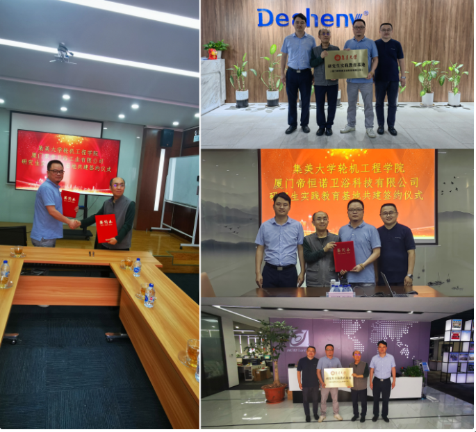 近日,轮机工程学院副院长戴乐阳一行赴校友企业厦门豪帝卫浴工业有限公司、厦门帝恒诺卫浴科技有限公司参加共建研究生实践教育基地签约及授牌仪式。公司总经理、轮机96级陈国斌校友参加仪式。