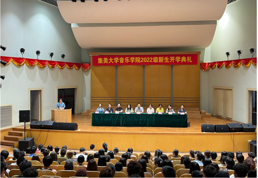 9月21日下午,音乐学院在音乐厅举行2022级新生开学典礼。学院党政领导班子、各教研室主任、科级干部、辅导员及2022级全体本科生、研究生出席开学典礼,大会由院党委副书记洪妍妮主持。