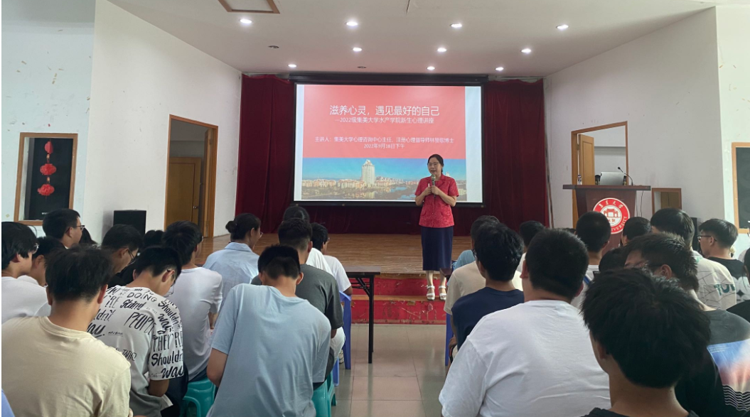 为提高2022级新生自我情绪认知、管理和调节能力,近日水产学院邀校心理咨询中心主任、注册心理督导师林赞歌作题为《滋养心灵,遇见最好的自己》的讲座。