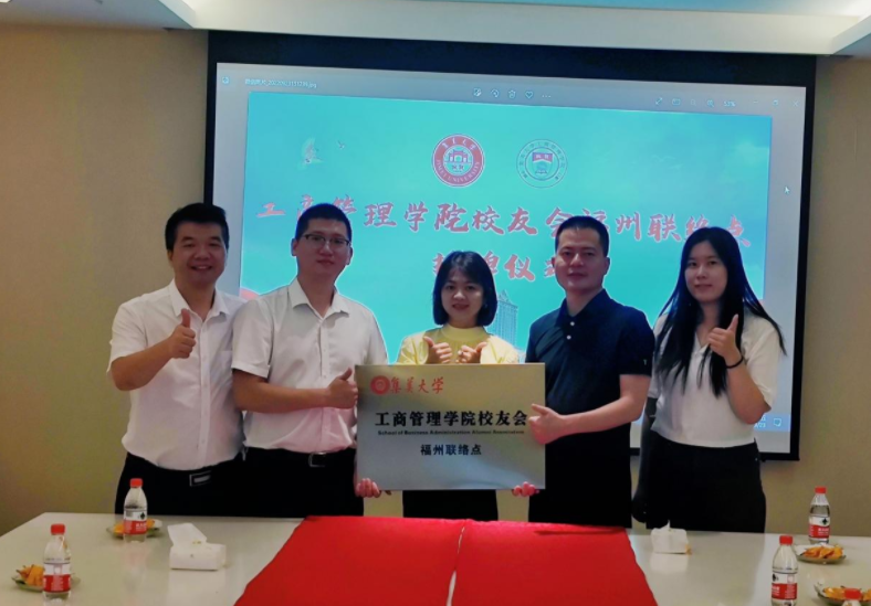 最后,举行联络点授牌仪式,由林功勋会长向工商管理学院两处福州校友联络点授牌,联络点负责人林永和(2009级市场营销)和周晨捷(2006级工商管理)接牌。