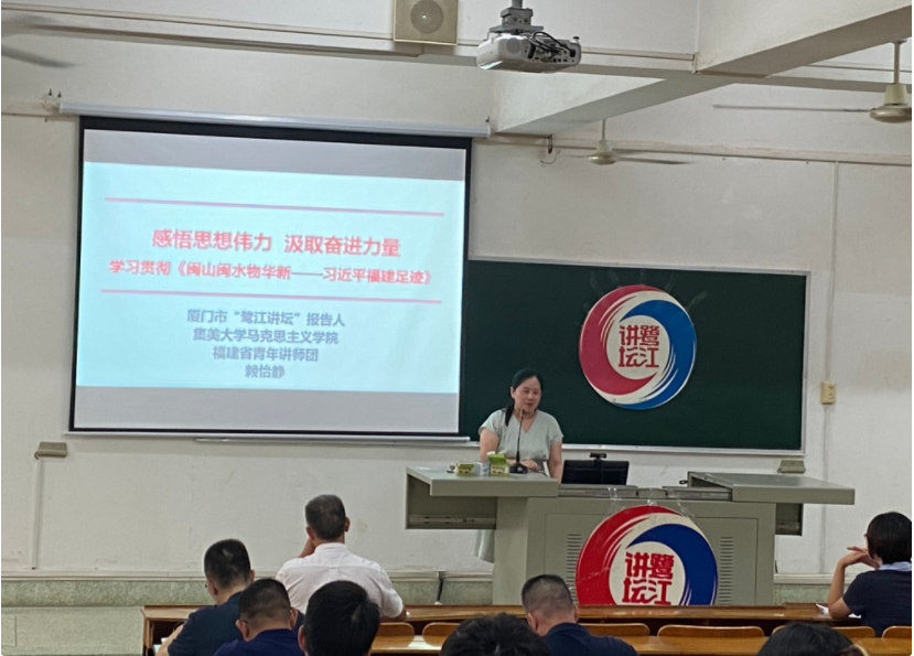 10月5日下午,港口与海岸工程学院举办主题为“感悟思想伟力,汲取奋进力量——学习《闽山闽水物华新——习近平福建足迹》”的鹭江讲坛。本次讲坛邀请马克思主义学院赖怡静主讲,学院党委书记郭金锭主持,学院全体教职工、全体学生党员、学习社全体成员聆听讲座。